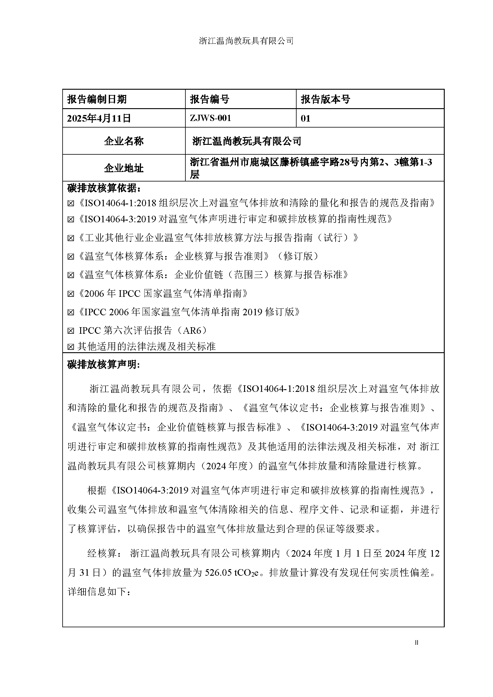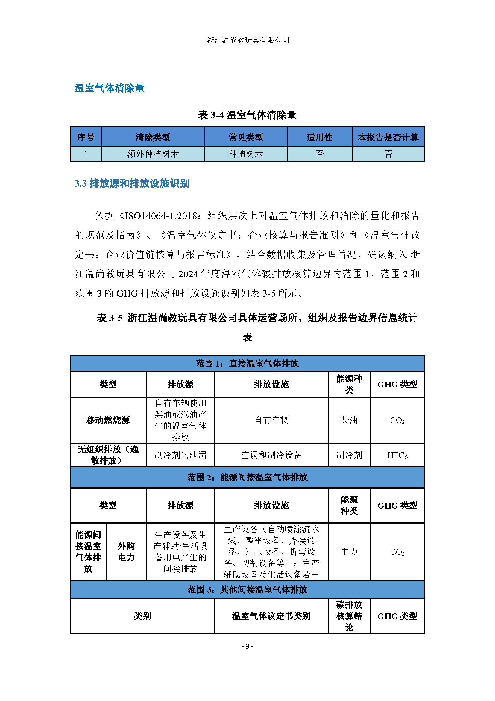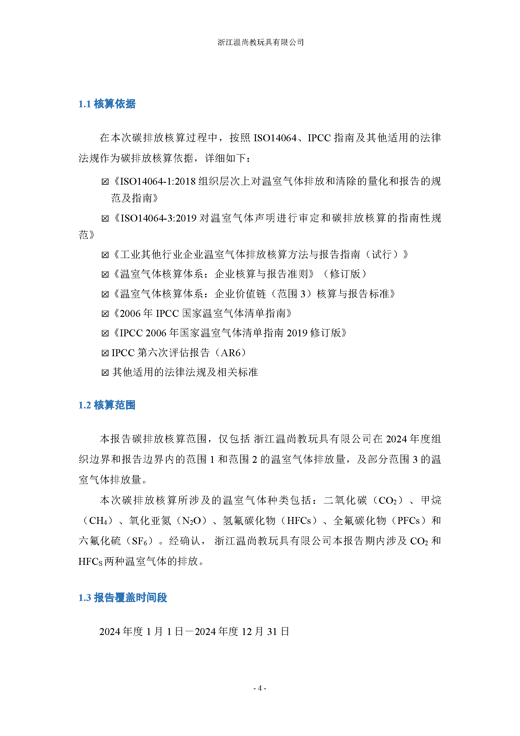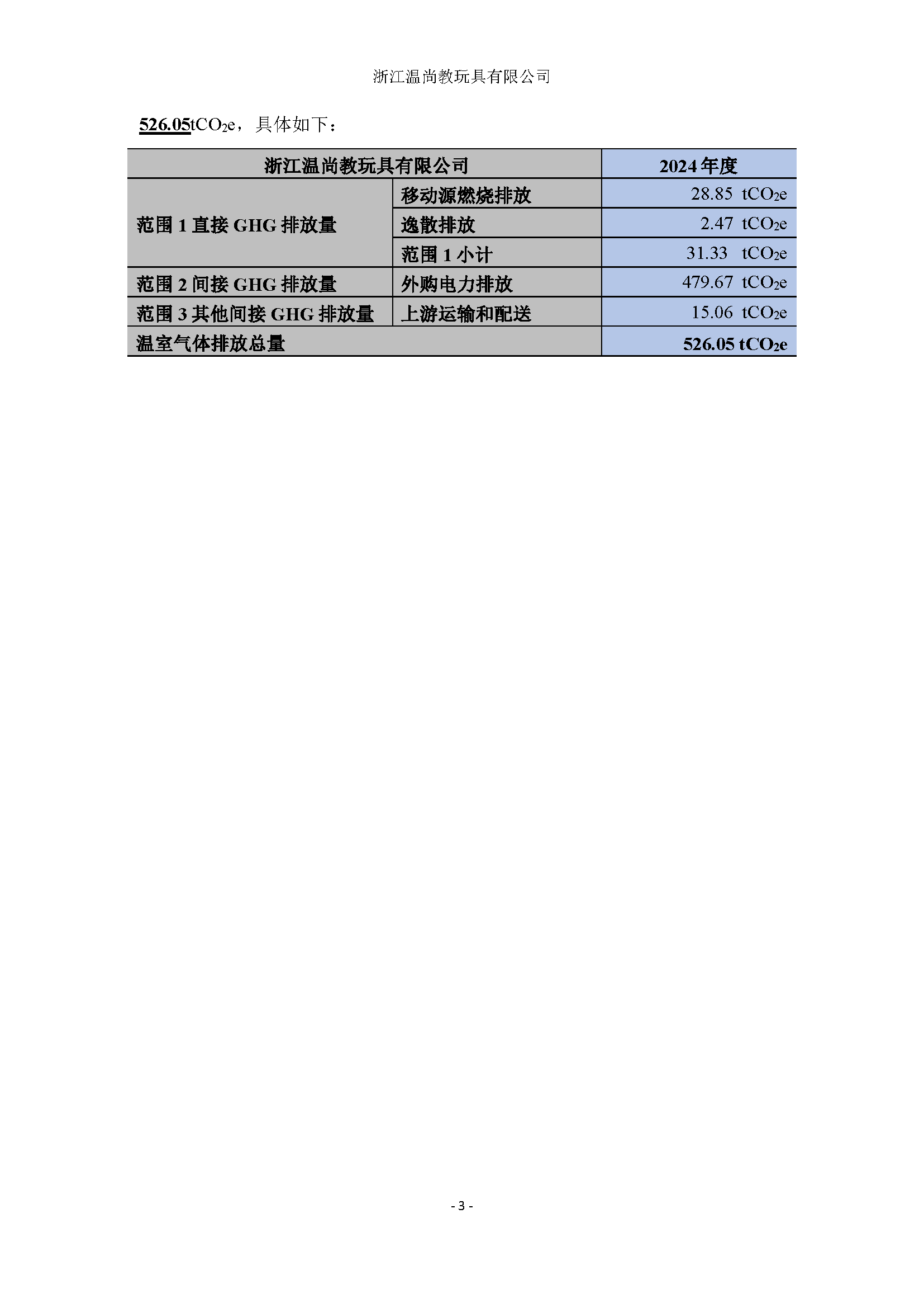 浙江溫尚教玩具有限公司 2024年度溫室氣體排放報告