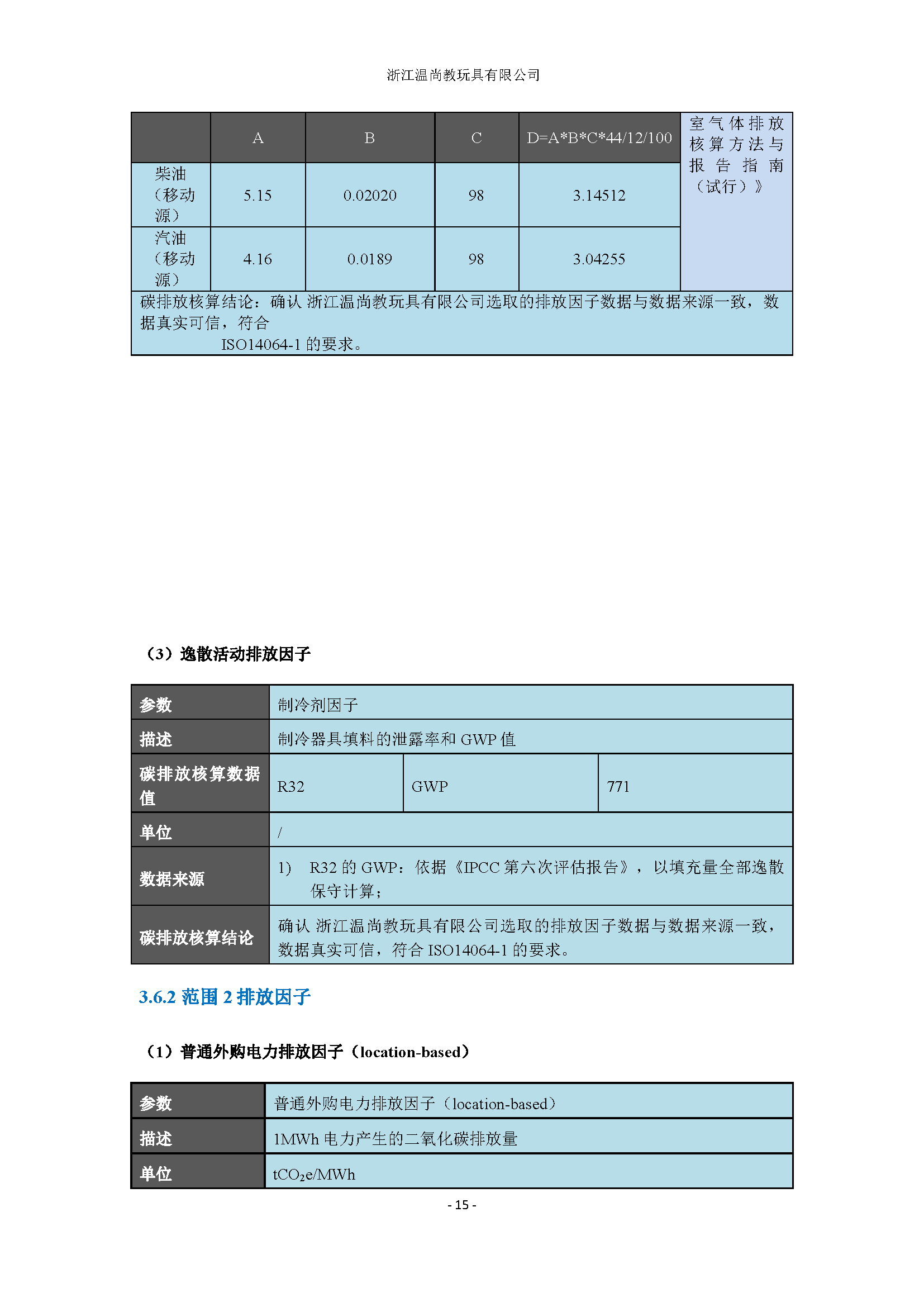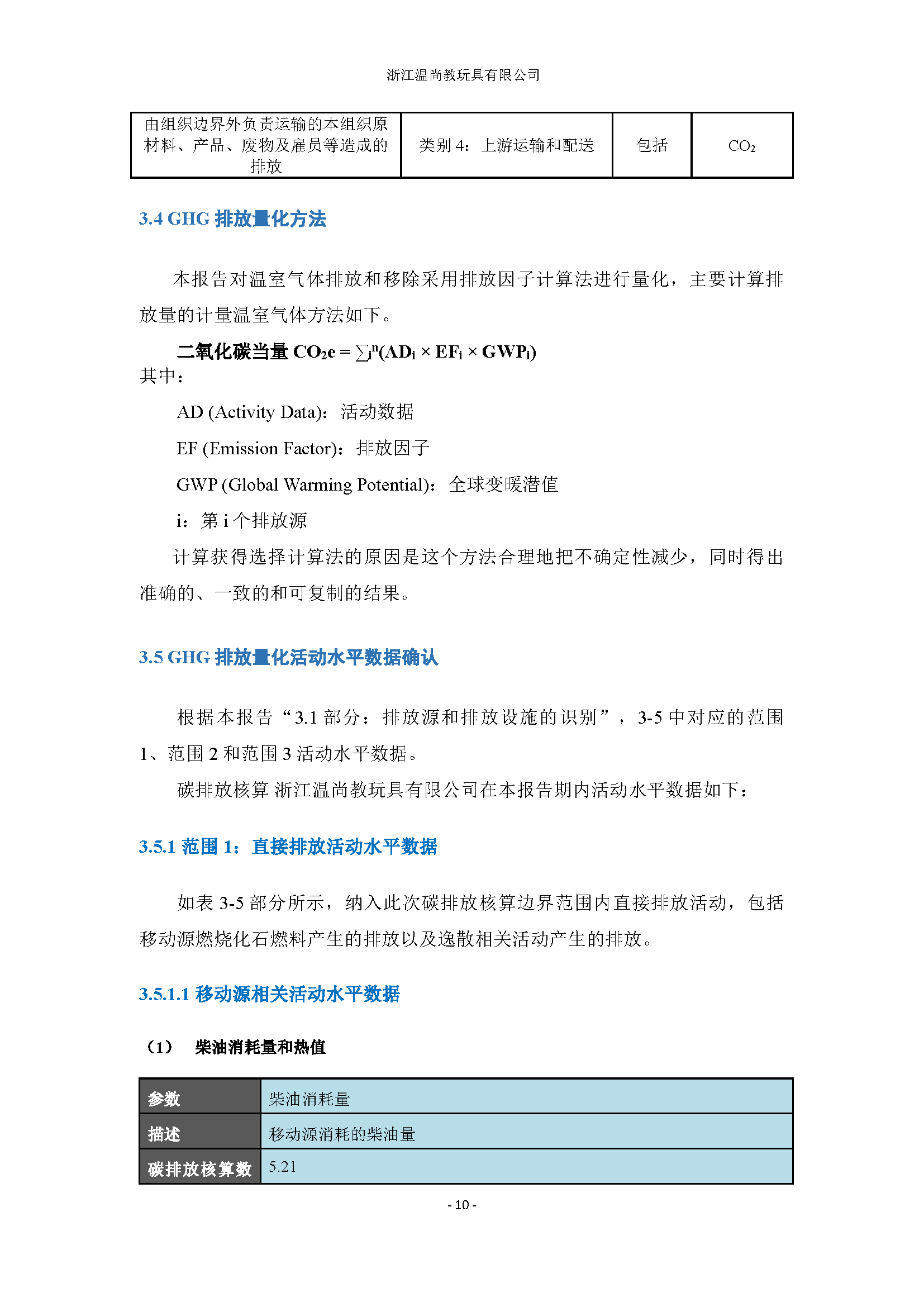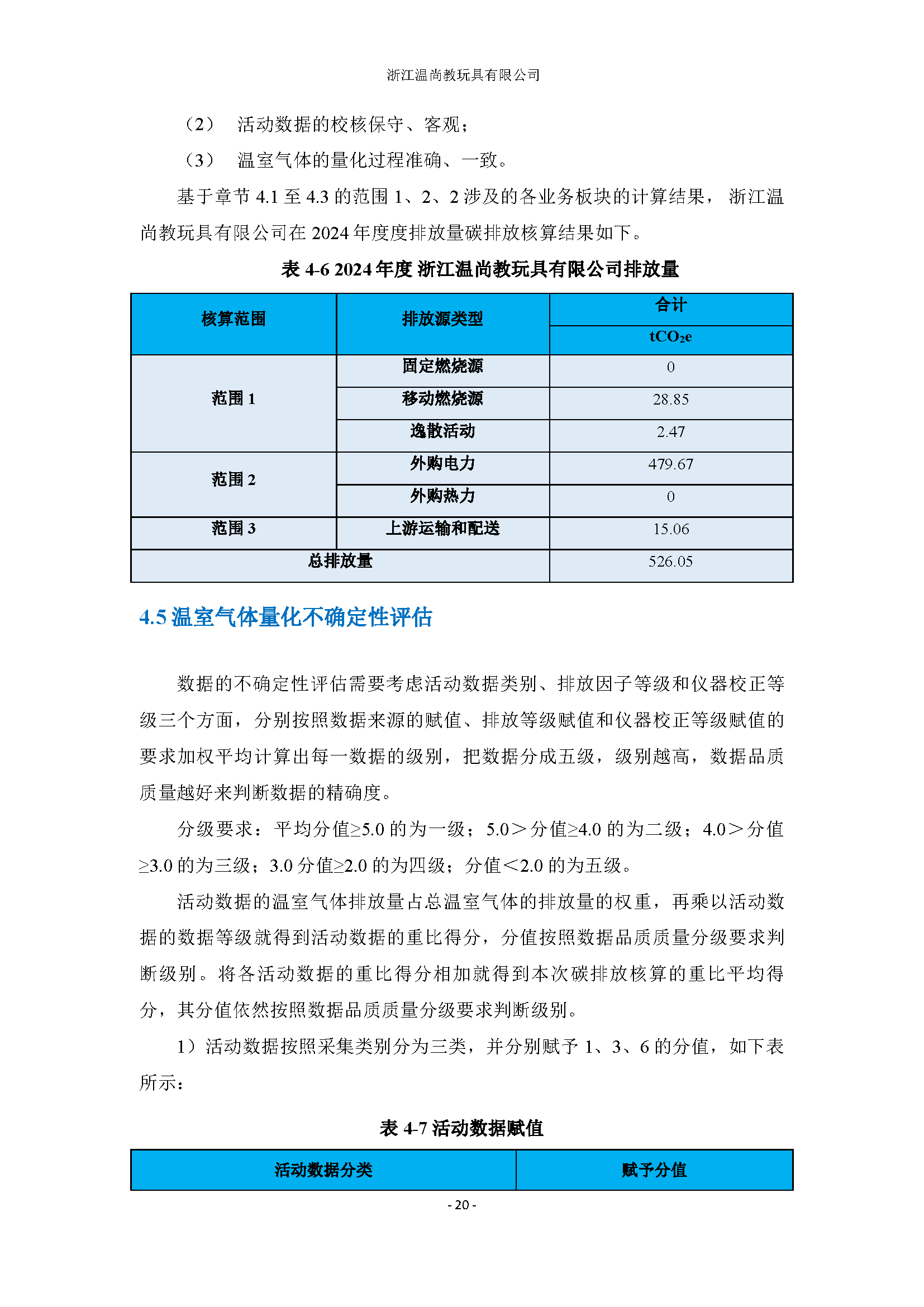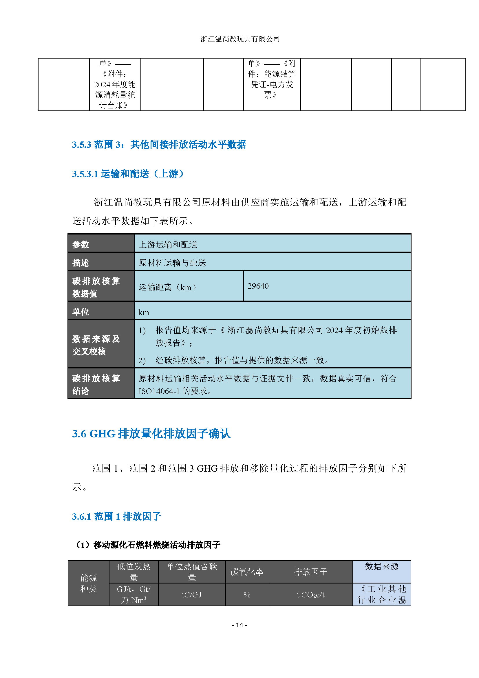 浙江溫尚教玩具有限公司 2024年度溫室氣體排放報告