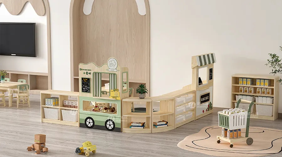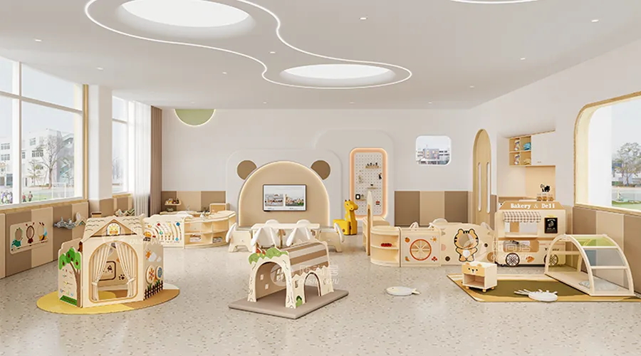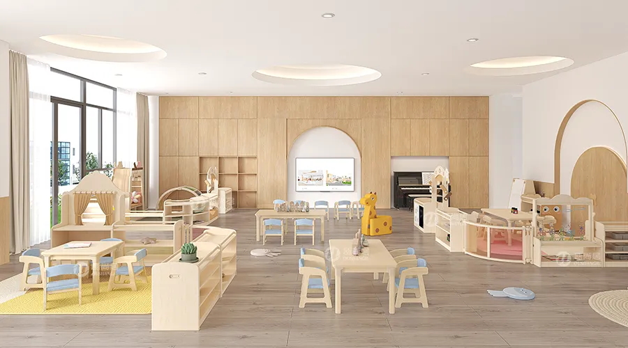 互動成長:倡導家具與教玩具的互動性設計,鼓勵孩子們在互動中交流、合作、探索。通過設計可組合、可變換的家具與教玩具,激發孩子們的想象力和創造力,讓他們在互動中建立友誼、學會分享、促進社交能力的發展。