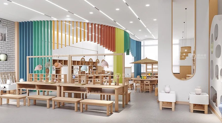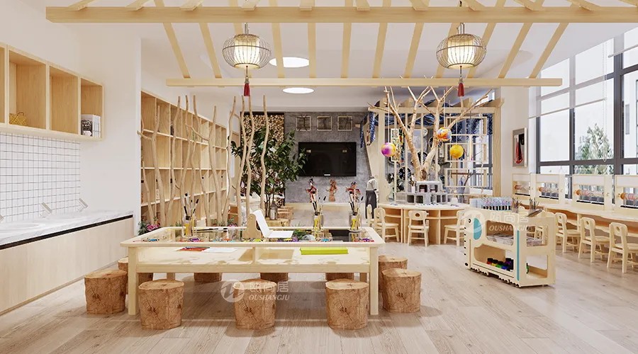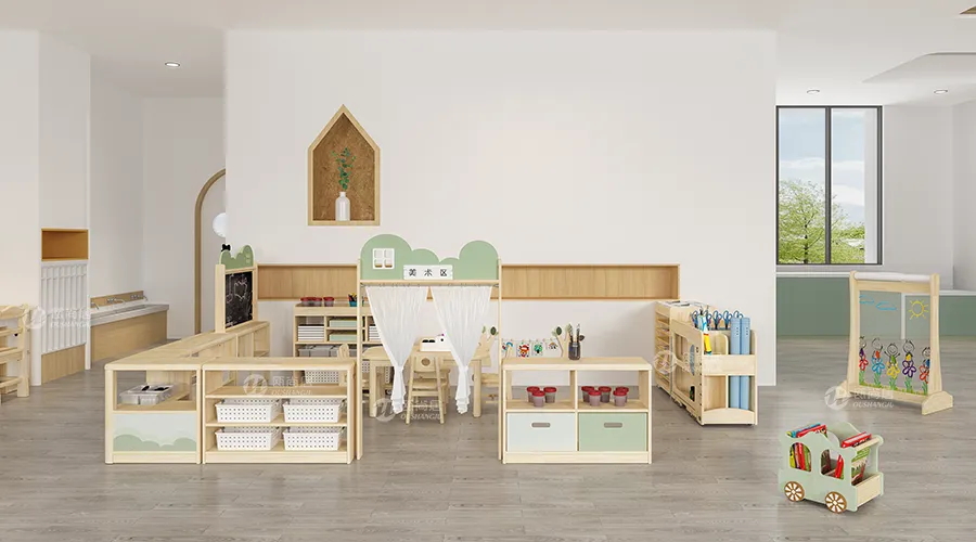 產品亮點:美工室是孩子們可以自由探索、嘗試和創作的場所,在這里,他們可以發揮自己的想象力和創造力,用各種材料和工具表達自己的想法和感受。將桌椅、板凳以及燈飾用特殊的造型和質感設計,例如,樹樁造型的椅子,大樹造型的美術桌,展現出趣味性藝術的情境式造型感。給孩子們以耳濡目染,生動有趣的藝術環境,幫助幼兒了解藝術、感受藝術,打造一個更加多元化的美術室。