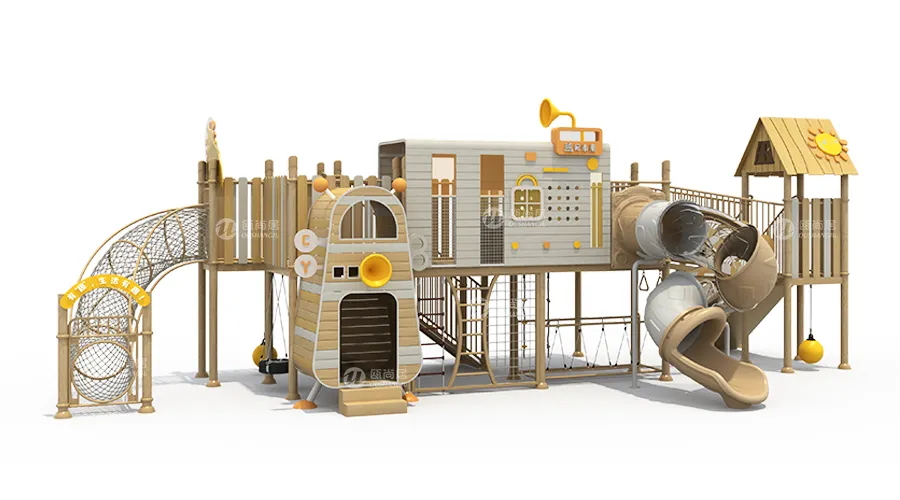 產品亮點:以“自然、環保、安全、趣味”為設計理念,讓兒童在親近自然的同時,享受陽光帶來的溫暖與活力,激發他們的探索欲和創造力。暖陽木趣系列大型玩具包含滑梯、攀爬架、秋千、平衡木等多種游樂設施,設計合理,結構穩固,能夠滿足兒童不同的玩耍需求,為孩子們打造了一個既安全又充滿樂趣的探險樂園。